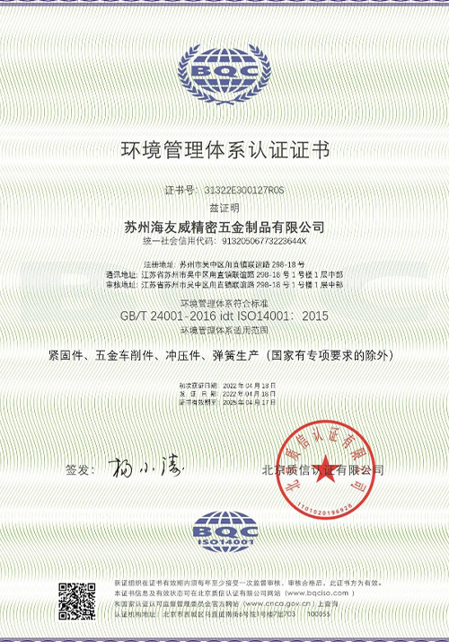 苏州海友威精密五金制品有限公司于2003年投资创建,拥有大量从日本、台湾购进的高精度紧固件设备,以及各种进口的试验、检验设备。并凭借严谨的工艺流程,优质的服务理念,丰富经验的专业技术人员,配套欧、美、日等大型......